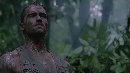 Визуальные решения в картинке тоже содержат скрытые смыслы. Термальное зрение Хищника — эффект, который в фильме впервые представлен как практически неоспоримая технологическая способность противника — служит не только для ужаса и интриги, но и для создания ключевого декоративного приема: сцена с грязью, где голова главного героя покрыта илом, стала не просто тактическим ходом, а иконой кинематографического искусства уклонения. Этот момент часто цитируется как пример оригинальной «пасхалки», потому что сам приём — использование грязи для маскировки теплового следа — превращается в визуальную метафору: человек и животное обманом возвращаются к элементарным принципам выживания. Позже он будет отсылаться в других фильмах, комедиях и видеоиграх, где герои повторяют трюк в оммаже оригиналу.