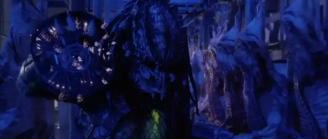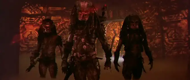 Ещё одна группа пасхалок связана с реквизитом и костюмами. Хотя дизайн Хищника в «Хищнике 2» развивает и усложняет образ, в нем можно обнаружить знакомые элементы и мотивы, перекочевавшие из первой части: видимость следов вооружения, конструкция маски и детали на наручном устройстве. Эти узнаваемые элементы работают как небольшие «трофеи» для зрителя-ценителя: найти их — значит подтвердить свою внимательность и знание франшизы. Реквизит зачастую претерпевает изменения, адаптируясь под новую среду, но общие линии и функционал сохраняются, и это остаточная отсылка к первому фильму.